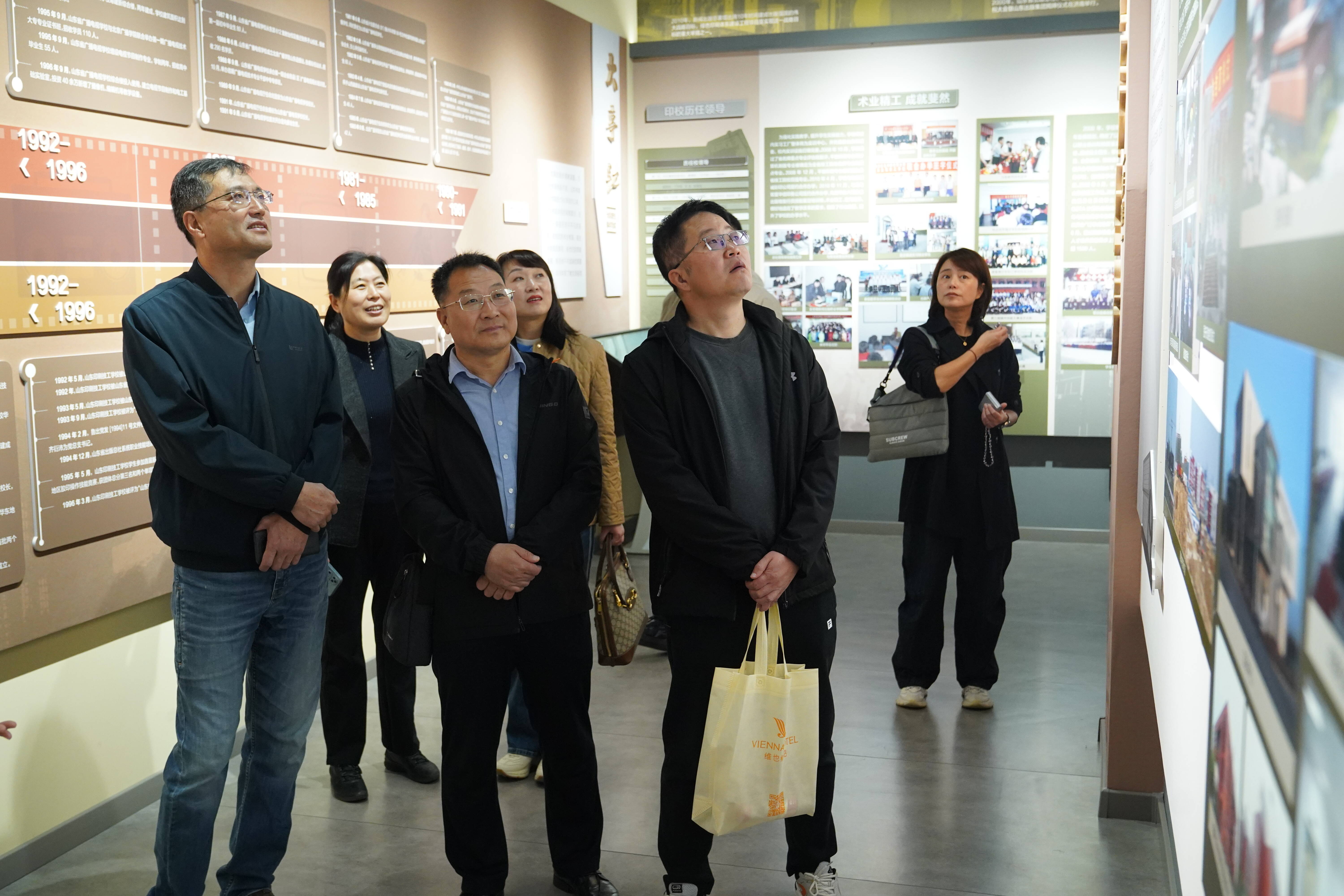 吴章鑫校长一行首先参观了我院校史馆,深入了解学院发展历程,随后前往产教融合中心参观了“新质领航艺强国 六十五载续华章”艺术展。