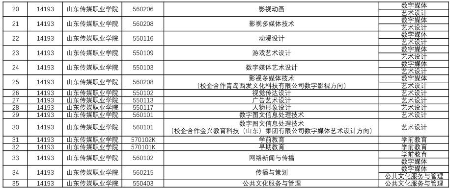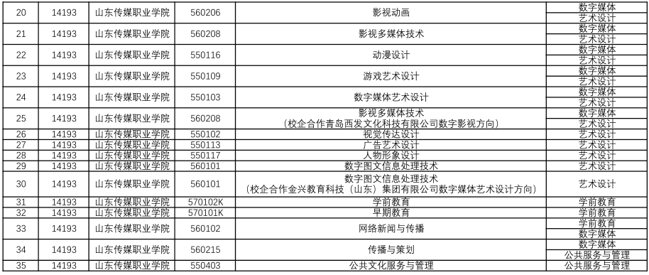 山东传媒职业学院2025年招生计划(省内常规批、艺术批、春季高考批,省外计划)