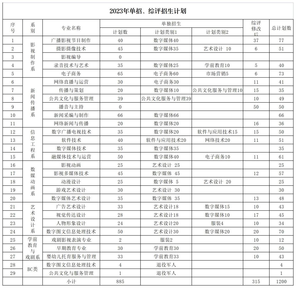 山东传媒职业学院2024年单招综评(普通类)分专业拟招生计划